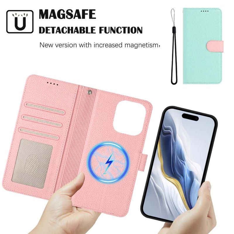 Detachable Wallet Case with MagSafe, RFID Protection and Hand Strap for iPhone 16 Pro