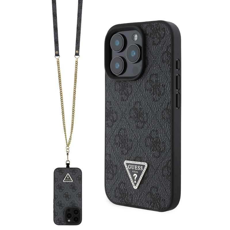 Guess 4G Strass Triangle Metal Logo Maska sa Crossbody Kaišem za iPhone 16 Pro Max
