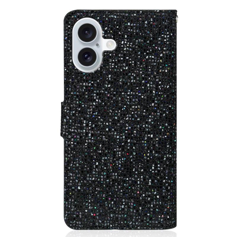 Elevate the style of your iPhone 16 with this stylish glitter wallet case. The glittery powder and unique design will give your device a distinctive and fashionable look. The TPU and PU materials make the case lightweight and easy to install, while the practical design combines a wallet and phone case into one convenient unit. The supporting stand design allows for hands-free use when watching movies or reading, and the ultra-strong magnetic closure keeps all your valuable items secure. With precise cutouts for full access to ports, function buttons, speakers, and camera, this case provides protection against daily wear and tear, scratches, marks, and scrapes. The handy strap allows for easy carrying.