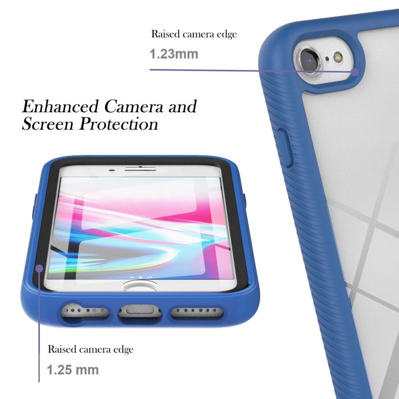 A combination of TPU edges and plastic back protects from drops, impacts, scratches, and dirt, while the front PET screen protector protects the display. Raised edges around the camera shield the lenses additionally.