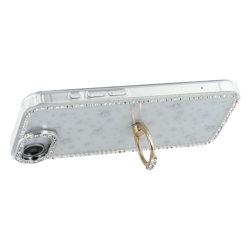 Give your iPhone 16e instant star quality and reliable everyday defence. This slim hybrid cover wraps your iPhone 16e in gleaming rhinestones, a smooth glitter back and a full-rotation metal ring that doubles as a secure grip or desk stand.