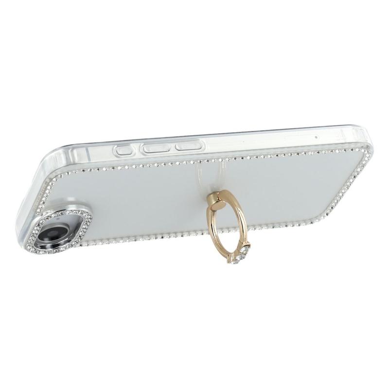 Give your iPhone 16e instant star quality and reliable everyday defence. This slim hybrid cover wraps your iPhone 16e in gleaming rhinestones, a smooth glitter back and a full-rotation metal ring that doubles as a secure grip or desk stand.