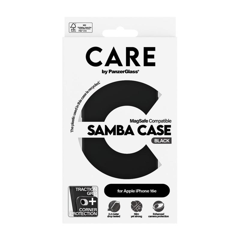 Protect your iPhone 16e in style, sustainability, and comfort with the CARE by PanzerGlass Fashionable Case in Samba Black—where tech protection meets modern design!