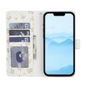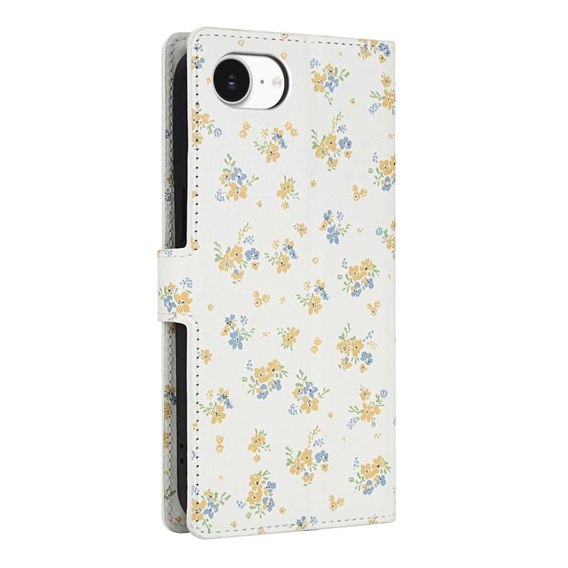 Rhombic Floral Wallet Case for iPhone 16e - with Strap and Card Slots