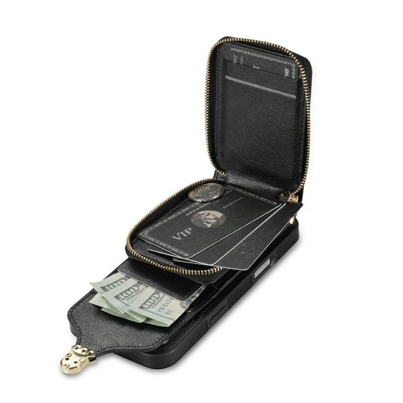 Carry your phone, cards, and cash in one sleek accessory with this wallet zipper case for iPhone 17. Made with durable TPU coated in premium polyurethane leather, it offers everyday protection while replacing the need for a separate wallet. Perfect for those who want style, convenience, and security in one.