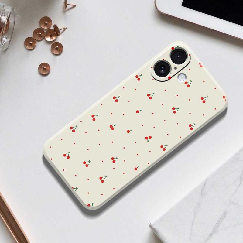 Cherry Pattern TPU Case for iPhone 17 - Soft-Touch Liquid-Silicone Texture with Raised Camera Guard