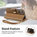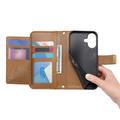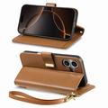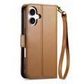 Floral & Leaf Pattern Wallet Case with Zipper Pocket & Wrist Strap for iPhone 17