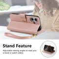 Floral & Leaf Pattern Wallet Case with Zipper Pocket & Wrist Strap for iPhone 17