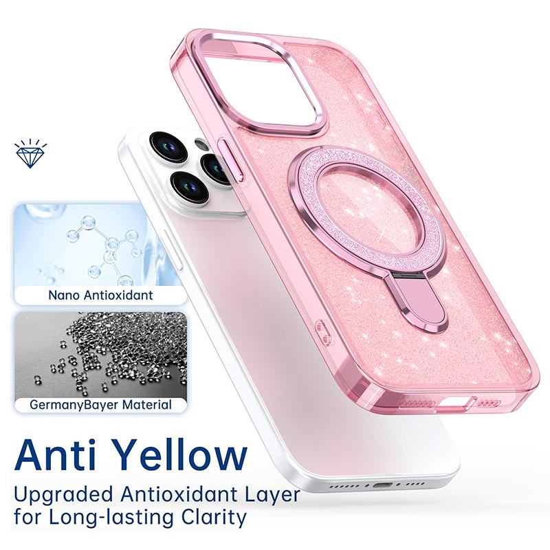 - Glitter Design - Features a sparkling glitter finish on both the case and ring kickstand, giving your phone a unique, eye-catching look.