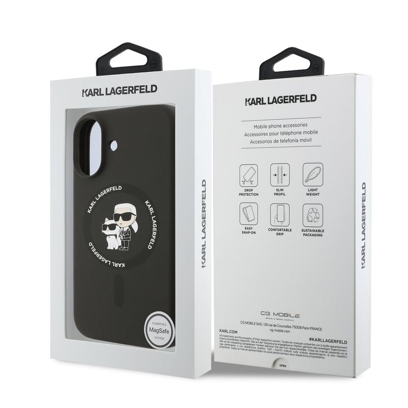 Elevate your iPhone 17 with the Karl Lagerfeld Liquid Silicone MagSafe Case, featuring an iconic design of Karl and Choupette. Crafted from premium liquid silicone, this case offers a soft-touch finish and superior protection against scratches and impacts. The sleek black design, combined with MagSafe compatibility, ensures that your phone remains stylish and functional, allowing for easy use with MagSafe accessories. This case is the perfect blend of fashion and practicality, making it a must-have for any Karl Lagerfeld fan.