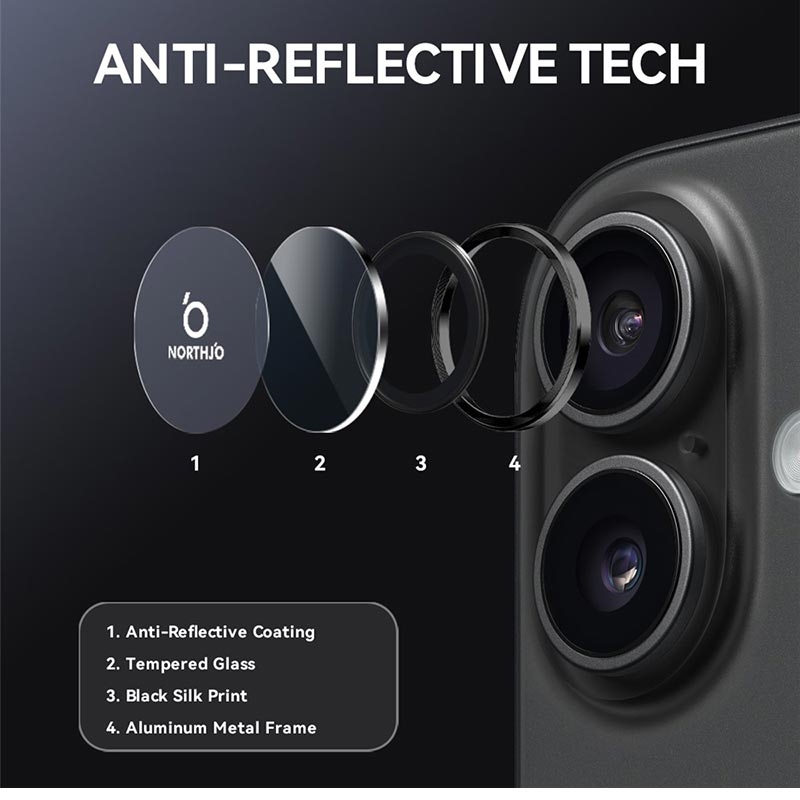 Upgrade your iPhone 17 with the Northjo camera lens protector. Featuring a CD veins aluminum ring, it adds a sleek, modern touch to your iPhone 17 while offering robust protection. The 9H tempered glass safeguards against scratches, impacts, and dust, ensuring your camera lens stays crystal clear. With easy, tool-free installation, you can enhance your iPhone 17 durability and aesthetics in seconds.