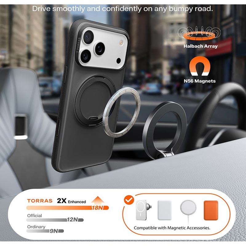 The TORRAS O-Fitness Series iPhone 17 Pro Max Case offers a perfect blend of protection, functionality, and style. Its 360° rotating kickstand provides unparalleled convenience for media consumption and hands-free use, while the enhanced MagSafe compatibility ensures secure and efficient charging. The military-grade protection and ergonomic design make it an ideal choice for users seeking both durability and comfort in a phone case.