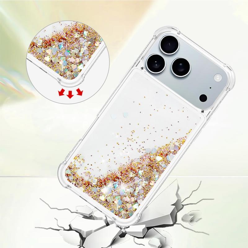 Turn every flip into a sparkle show. This ultra-slim TPU case for the iPhone 17 Pro combines fluid glitter hearts with shock-absorbing protection, wrapping your foldable in a fun, eye-catching layer that keeps scratches, drops and everyday scuffs at bay. Precise cut-outs leave hinges, speakers and USB-C ports fully accessible, while raised edges shield the camera lenses and outer display when you set the phone down.
