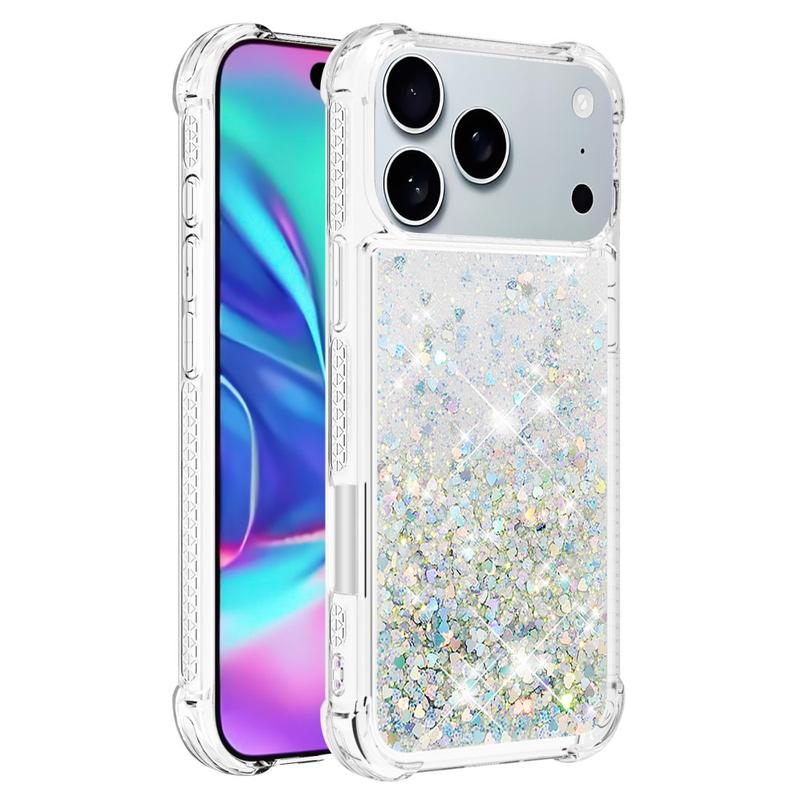 Turn every flip into a sparkle show. This ultra-slim TPU case for the iPhone 17 Pro Max combines fluid glitter hearts with shock-absorbing protection, wrapping your foldable in a fun, eye-catching layer that keeps scratches, drops and everyday scuffs at bay. Precise cut-outs leave hinges, speakers and USB-C ports fully accessible, while raised edges shield the camera lenses and outer display when you set the phone down.