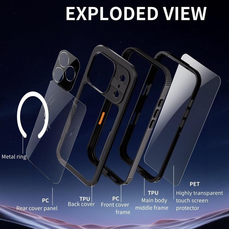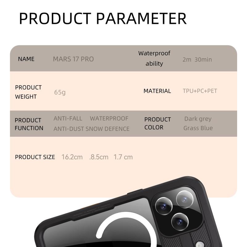 • Protect your iPhone 17 Pro without hiding its style. This REDPEPPER case pairs polycarbonate with soft-touch TPU bumpers and PET, sealing out water, dust and snow while standing up to everyday drops. Built-in magnets align perfectly with MagSafe accessories, so wireless power and car mounts stay effortless.