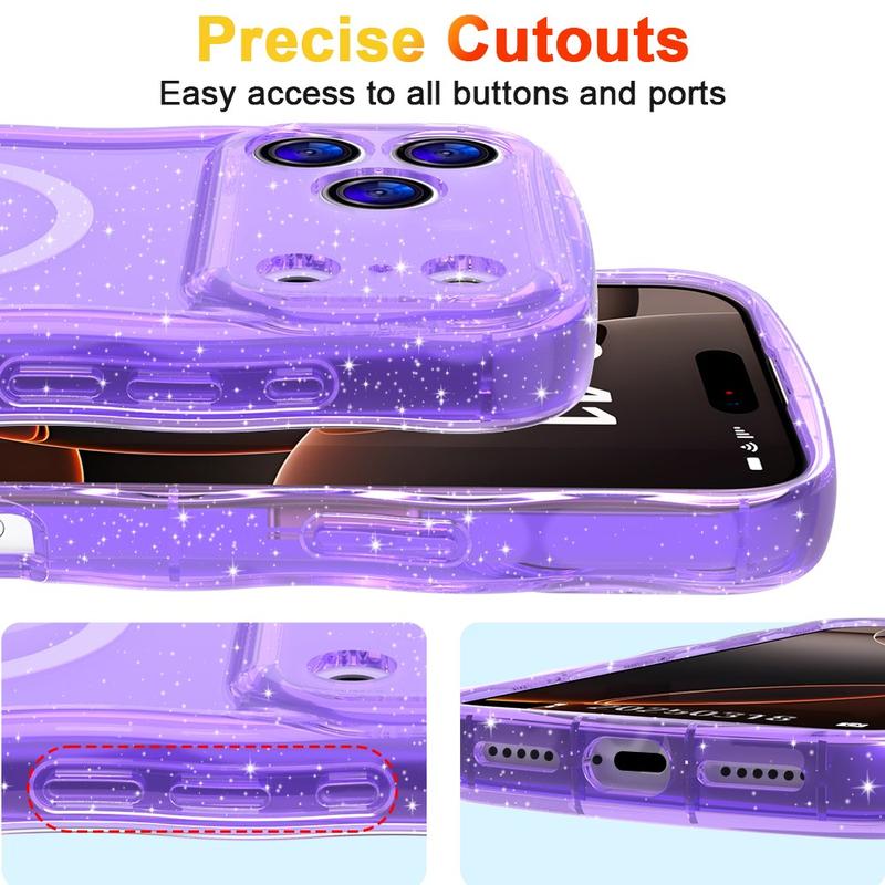 iPhone 17 Pro Max Wave-Edge Laser Glitter MagSafe Case - Translucent Purple