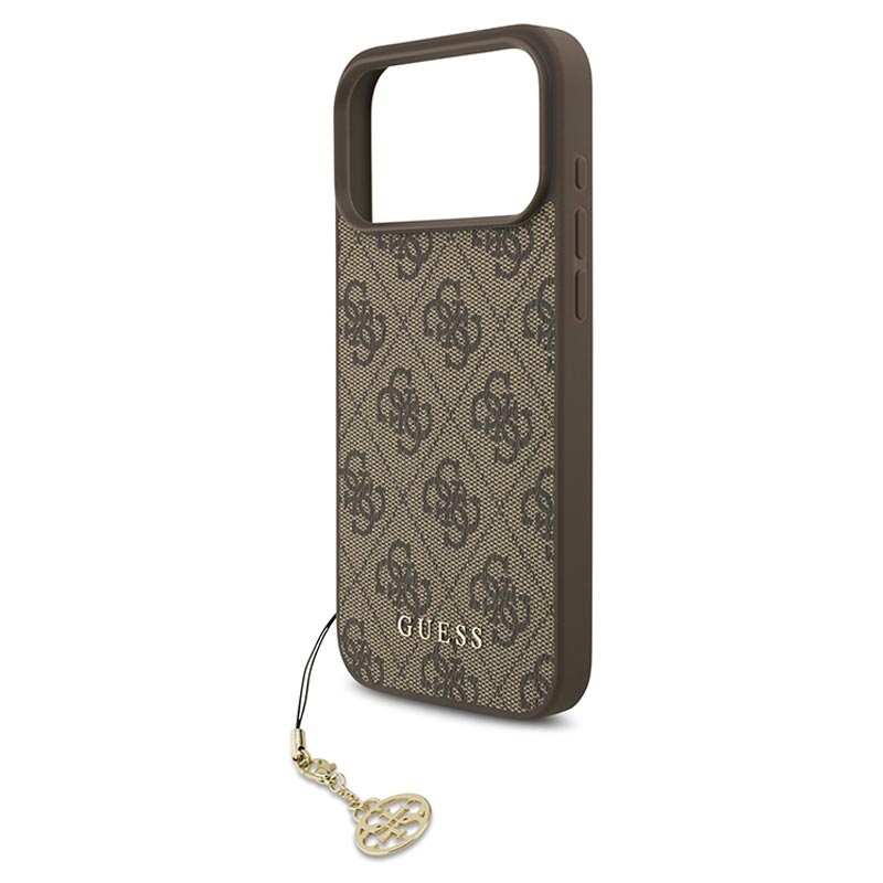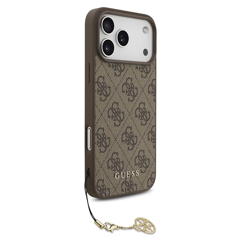 The iPhone 17 Pro Max Guess 4G case is more than just protection – it’s a fashion statement. Its refined 4G logo pattern, gold-tone Guess emblem, and attached charm add a touch of glamour, making your phone stand out in any situation.