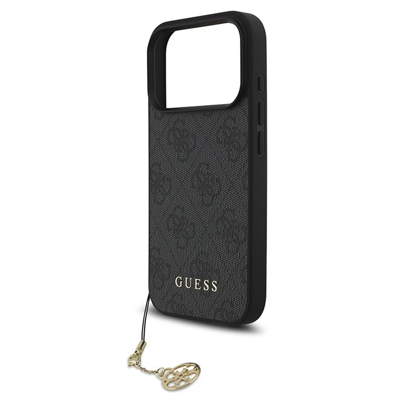 The iPhone 17 Pro Guess 4G case is more than just protection – it’s a fashion statement. Its refined 4G logo pattern, gold-tone Guess emblem, and attached charm add a touch of glamour, making your phone stand out in any situation.
