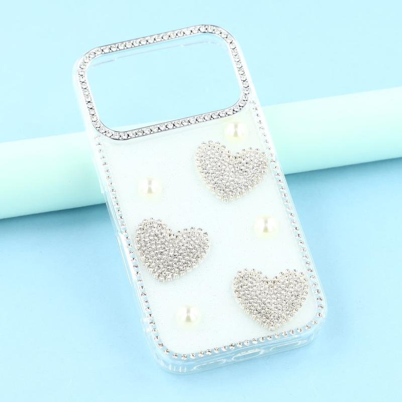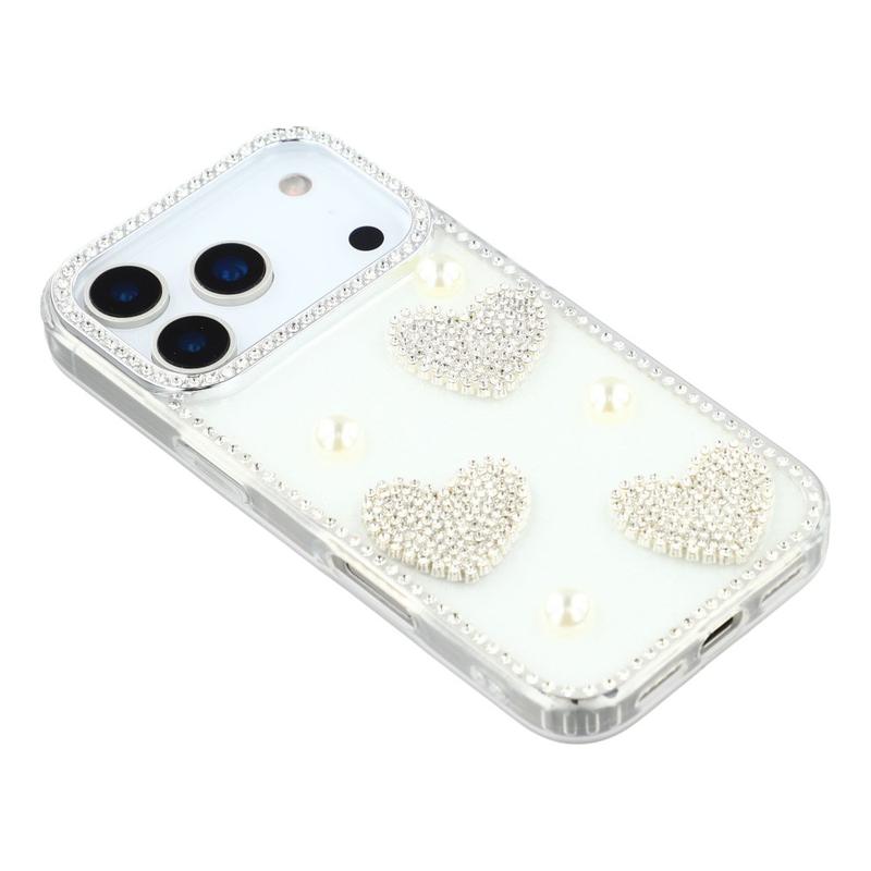 This iPhone 17 Pro case combines reliable everyday protection with glamorous style. Featuring shimmering rhinestones around the edges and sparkling pearl heart decorations on the back, it turns your iPhone 17 Pro into a fashionable accessory while keeping it safe from scratches and bumps.