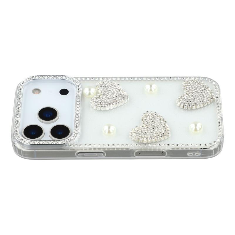 This iPhone 17 Pro case combines reliable everyday protection with glamorous style. Featuring shimmering rhinestones around the edges and sparkling pearl heart decorations on the back, it turns your iPhone 17 Pro into a fashionable accessory while keeping it safe from scratches and bumps.