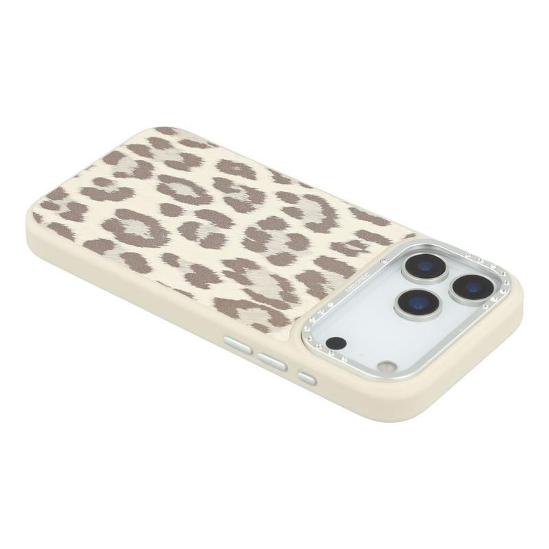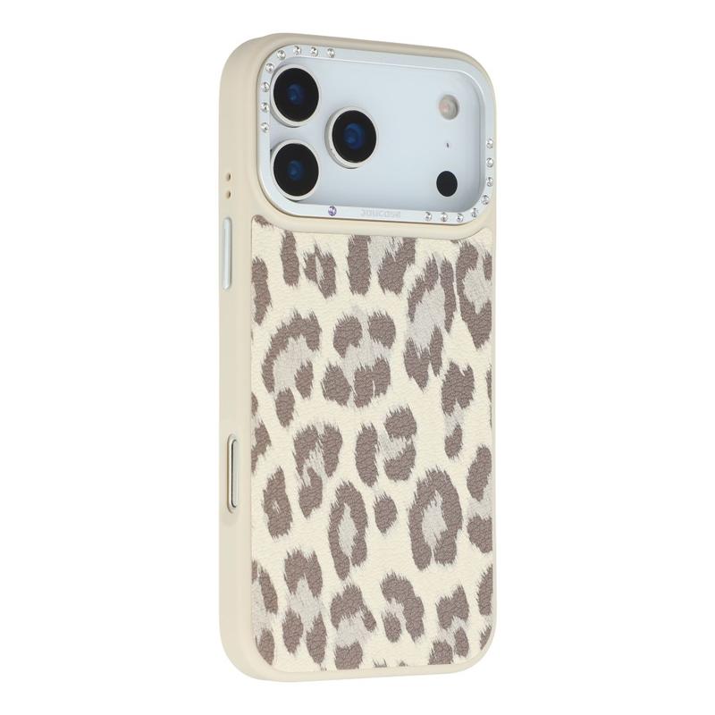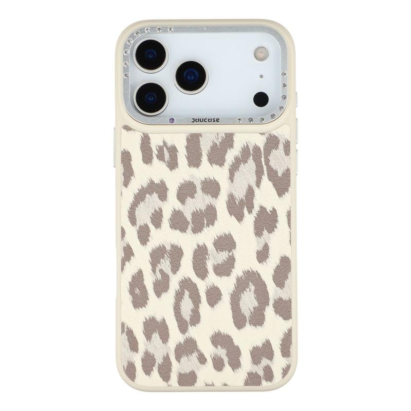 Jaucase Leopard Print Magnetic Hybrid Case for iPhone 17 Pro Max - PU + TPU + PC with Rhinestone Lens Frame