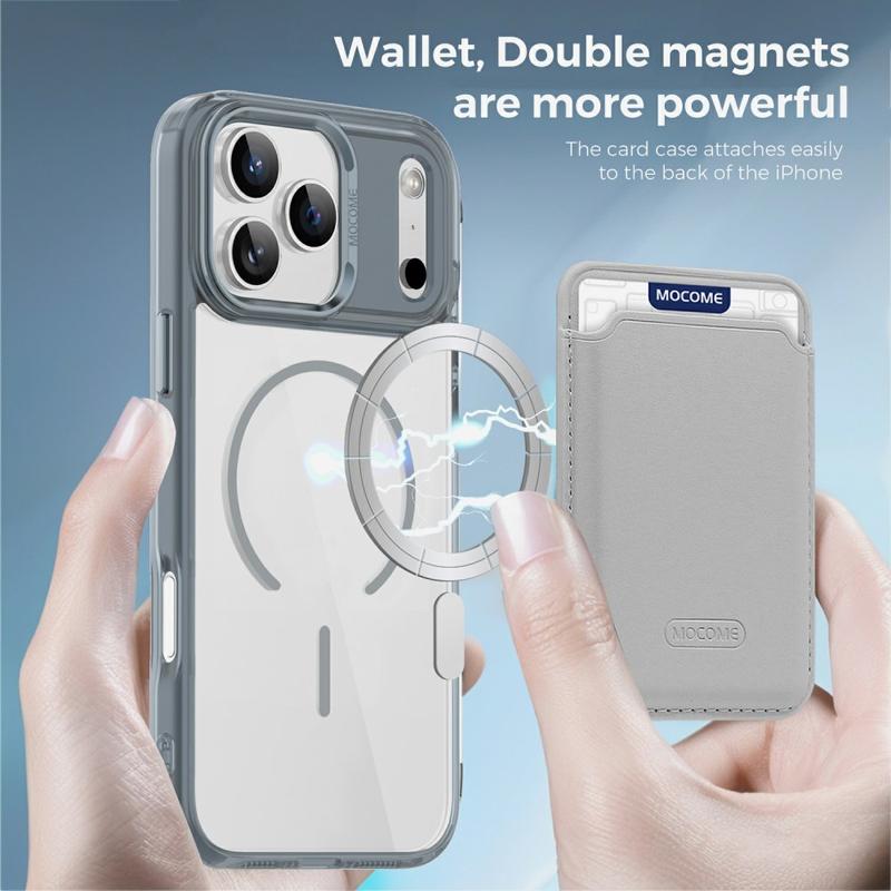Protect your device in style with the MagSafe Case for iPhone 17 Pro Max, designed for both durability and convenience. Built with a hybrid TPU + PC construction, this case combines flexibility with strength to guard against drops, scratches, and daily wear. The integrated magnetic ring makes it fully compatible with MagSafe charging and magnetic car mounts, while the detachable dual-magnet slim card bag lets you carry 1-2 cards without adding bulk. A crystal-clear finish keeps your iPhone 17 Pro Max looking sleek and original, while reinforced edges and raised bezels ensure all-round protection for your screen and camera.