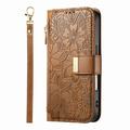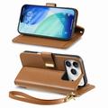 Floral & Leaf Pattern Wallet Case with Zipper Pocket & Wrist Strap for iPhone 17 Pro