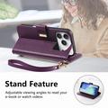 Floral & Leaf Pattern Wallet Case with Zipper Pocket & Wrist Strap for iPhone 17 Pro Max