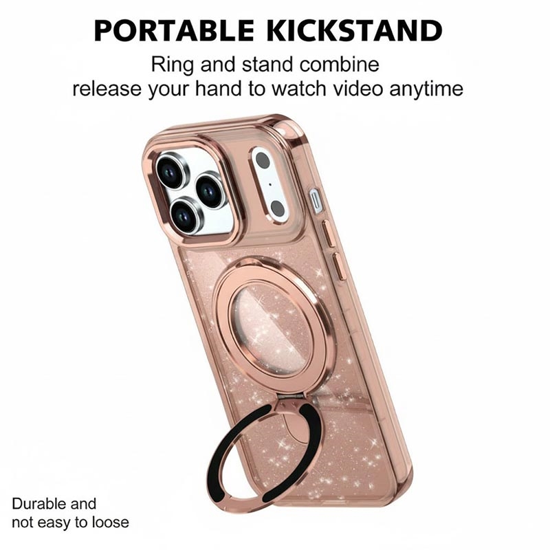 Glitter Case with Kickstand for iPhone 17 Pro - MagSafe Compatible TPU + PC Hybrid Kickstand Cover
