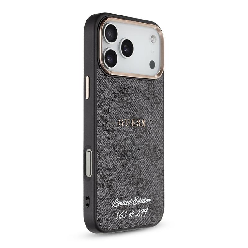 Make your iPhone 17 Pro Max stand out with the Guess 4G MagSafe Strap Case – Limited Edition. Featuring the signature 4G pattern, Guess logo, and a stylish beaded wrist strap, this back cover blends fashion and everyday practicality. Only 299 pieces were made, and each case is individually numbered on the back—adding real collector appeal. Crafted from lightweight, durable polyurethane (artificial leather), it helps protect your iPhone 17 Pro Max from dust and scratches while offering a secure, non-slip grip. The precise fit keeps buttons and ports fully accessible, and MagSafe compatibility means you can use magnetic accessories and wireless charging without removing the case.