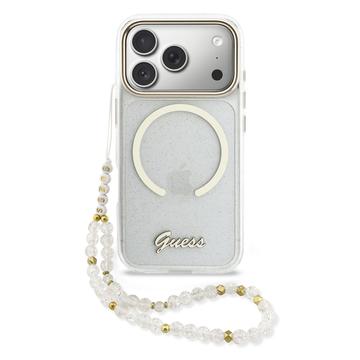 Guess IML Glitter Script Strap MagSafe Case for iPhone 17 Pro Max - Glitter Back Cover with Wrist Strap, PC+TPU Protection, MagSafe Compatible