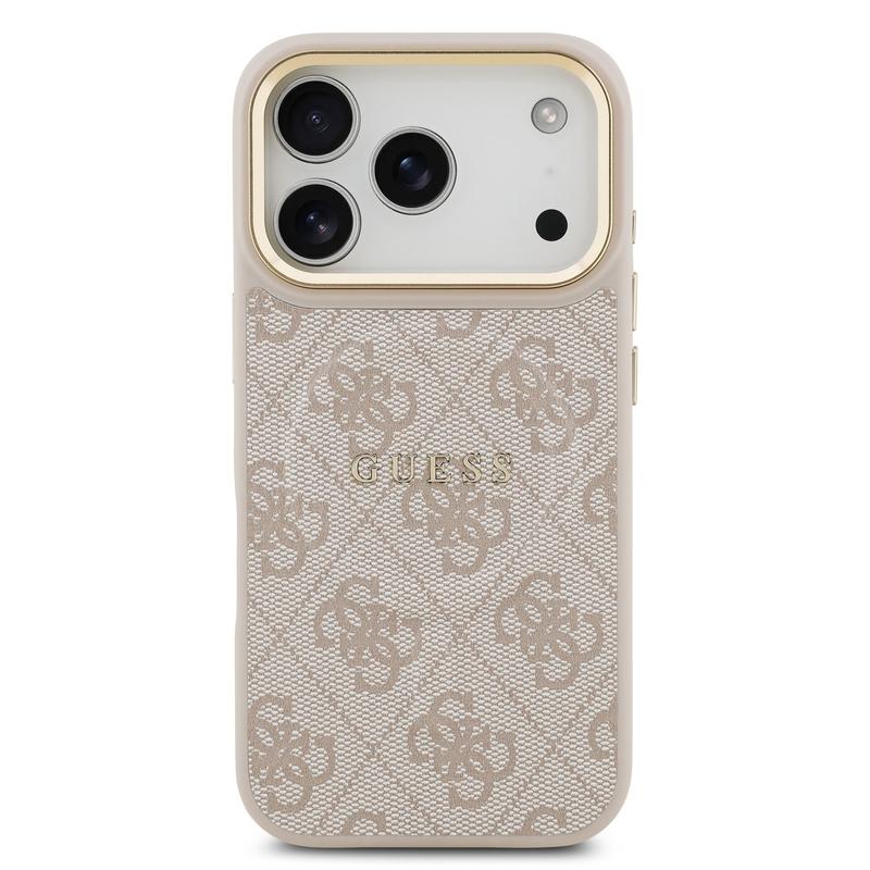 Guess 4G Gold Frame MagSafe Case for iPhone 17 Pro - Slim Protective Back Cover, Polyurethane, Wireless Charging Support
