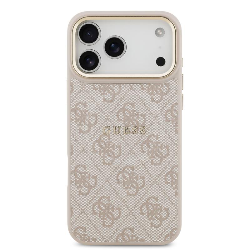 Guess 4G Gold Frame MagSafe Case for iPhone 17 Pro Max - Slim Protective Back Cover, Polyurethane, Wireless Charging Support