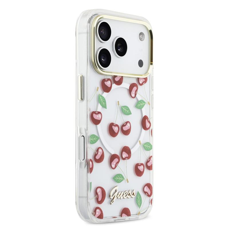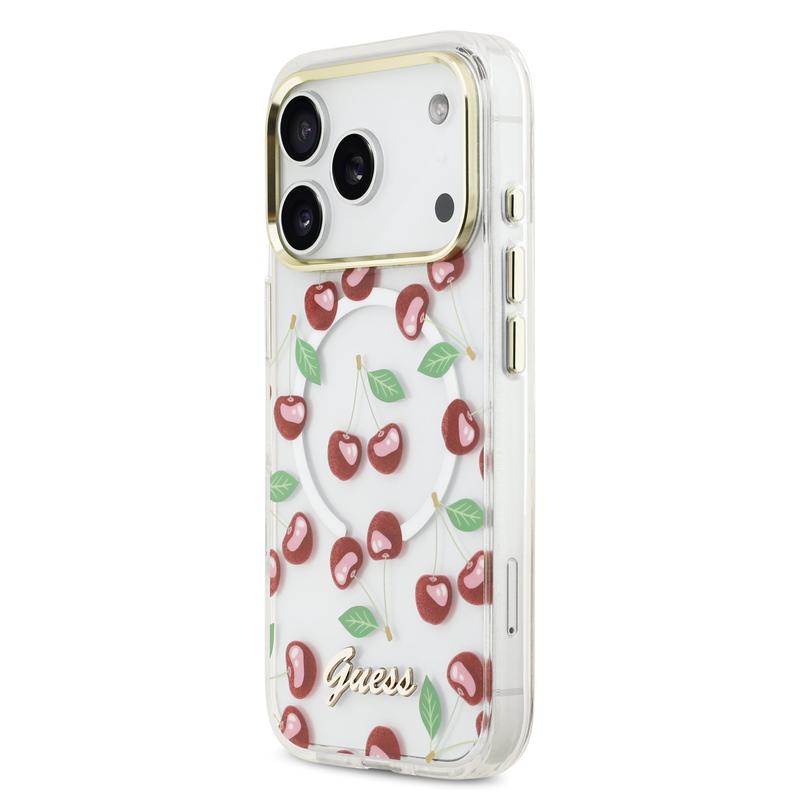Guess IML Glitter Cherry MagSafe Hybrid Case for iPhone 17 Pro - PC and TPU Protective Back Cover