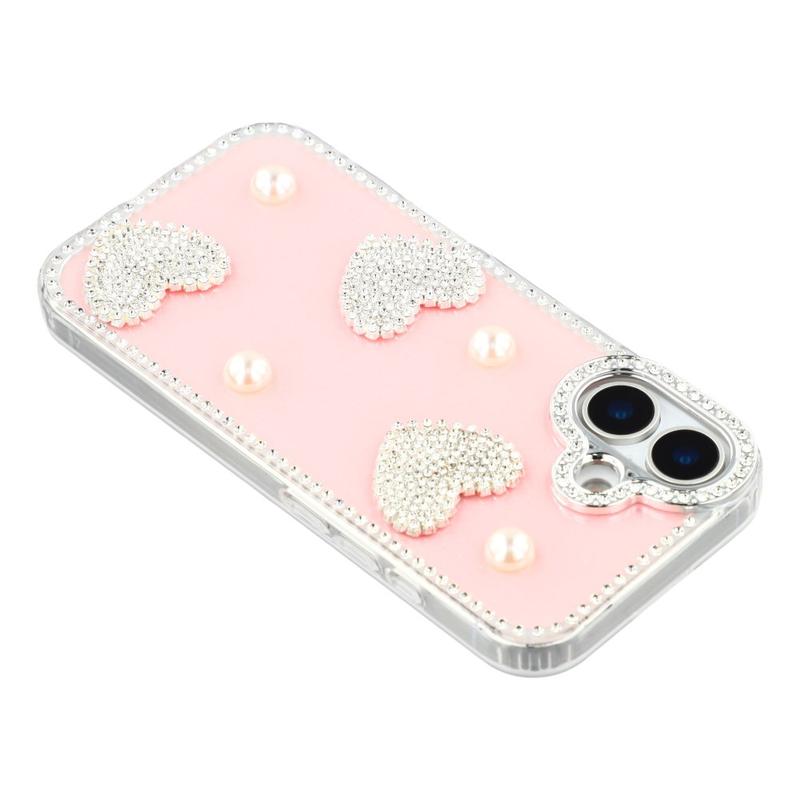This iPhone 17 case combines reliable everyday protection with glamorous style. Featuring shimmering rhinestones around the edges and sparkling pearl heart decorations on the back, it turns your iPhone 17 into a fashionable accessory while keeping it safe from scratches and bumps.