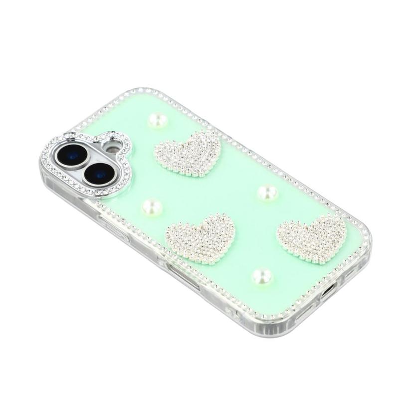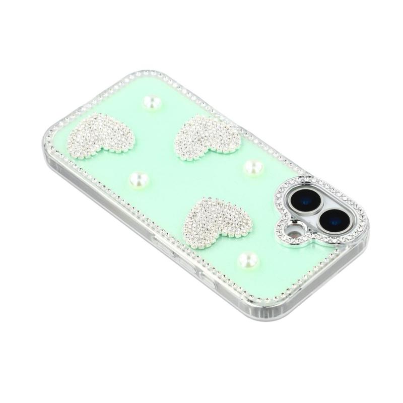 This iPhone 17 case combines reliable everyday protection with glamorous style. Featuring shimmering rhinestones around the edges and sparkling pearl heart decorations on the back, it turns your iPhone 17 into a fashionable accessory while keeping it safe from scratches and bumps.