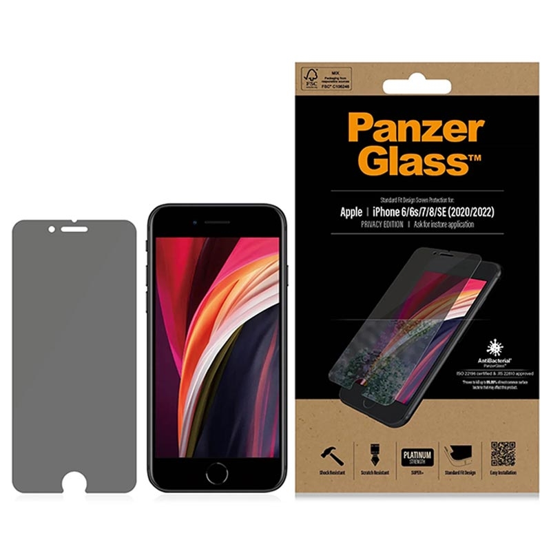 PanzerGlass Standard Fit Privacy AntiBacterial Zaštitno Kaljeno Staklo za iPhone 6, iPhone 6S, iPhone 7, iPhone 8, iPhone SE (2020), iPhone SE (2022)