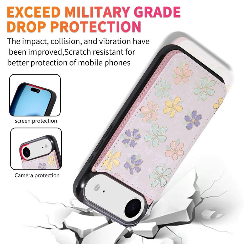 Dress your iPhone Air in garden-fresh style without bulking your pockets. This hybrid case bonds scratch-proof flower-print polyurethane leather to a shock-absorbing TPU shell, then hides a single RFID-shielded card slot that flips out into a sturdy kick-stand for hands-free streaming. Slim, feather-light and built for tap-and-go security—no extra wallet required.