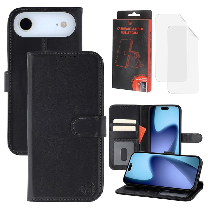 MyTPhone CardMate Premium Leather Wallet Case for iPhone Air - Stand Feature, Card Holder, Wireless Charging Support, 2x Screen Protector
