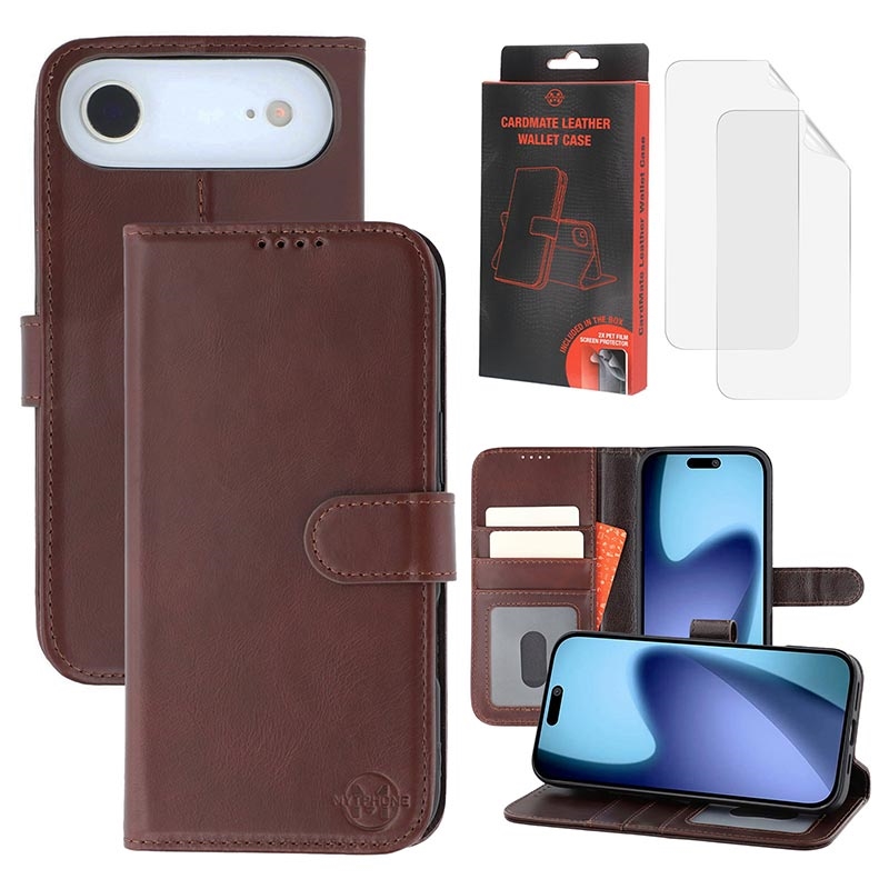 MyTPhone CardMate Premium Leather Wallet Case for iPhone Air - Stand Feature, Card Holder, Wireless Charging Support, 2x Screen Protector