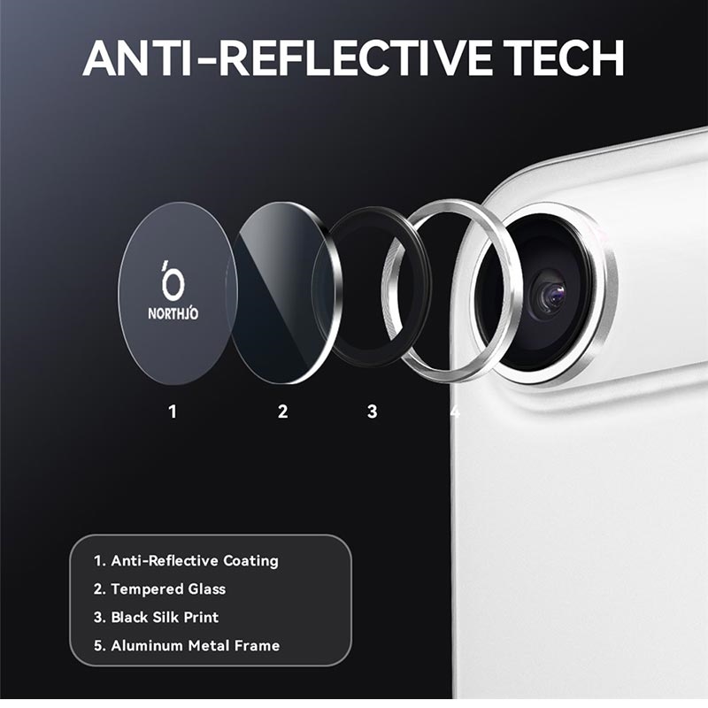 Upgrade your iPhone Air with the Northjo camera lens protector. Featuring a CD veins aluminum ring, it adds a sleek, modern touch to your iPhone Air while offering robust protection. The 9H tempered glass safeguards against scratches, impacts, and dust, ensuring your camera lens stays crystal clear. With easy, tool-free installation, you can enhance your iPhone Air durability and aesthetics in seconds.