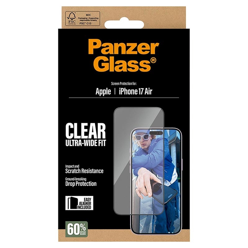 PanzerGlass Ultra-Wide Fit zaštitno staklo sa EasyAligner-om je vrhunska odbrana za vaš iPhone Air od svakodnevnih oštećenja. Ne dozvolite da slučajni udarci ili padovi unište vaš uređaj. Sa ovim zaštitnim staklom otpornim na ogrebotine i udarce, možete uživati u visokoj zaštiti od pada i održavati vaš telefon netaknutim. Takođe, zahvaljujući priloženom alatu EasyAligner, instalacija nikada nije bila lakša.