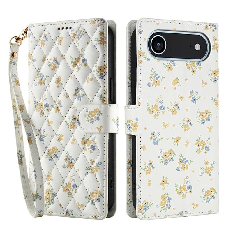 Rhombic Floral Wallet Case for iPhone Air - with Strap and Card Slots