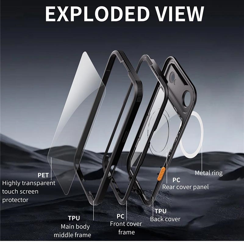 - Full-Body Protection: Encloses the device completely, safeguarding against water, dust, and shocks.