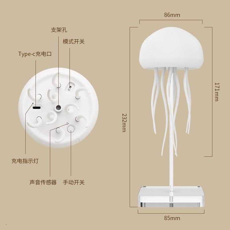 Jellyfish Sound-Activated Smart Mood Lamp - 600mAh Rechargeable Night-Light with Rotating Tentacles