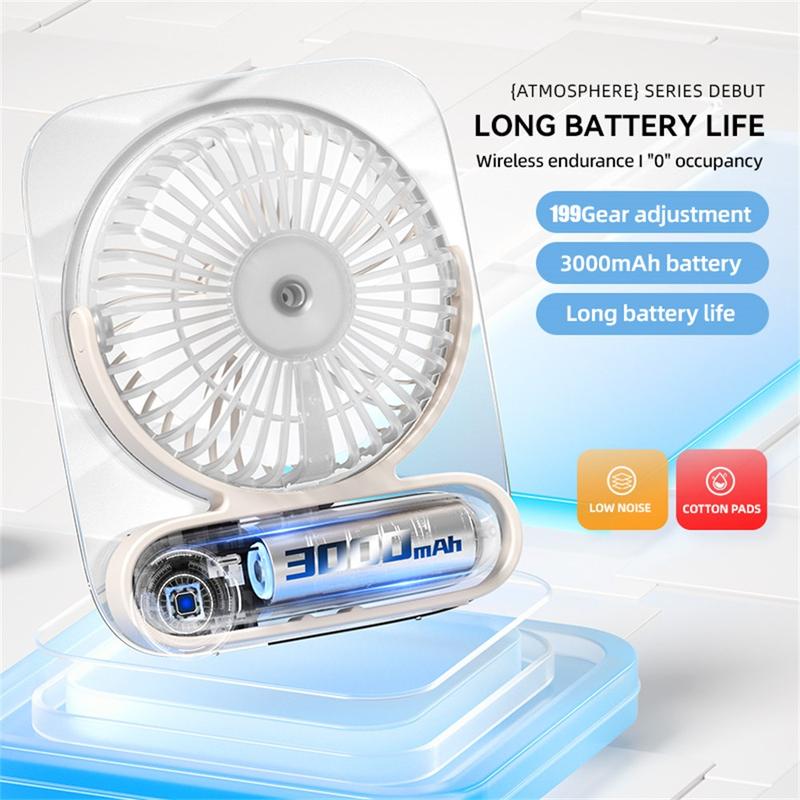 JF136 Wide-Angle Portable Desk & Hanging Fan / 199-Speed 3000mAh USB-C Rechargeable Cooler