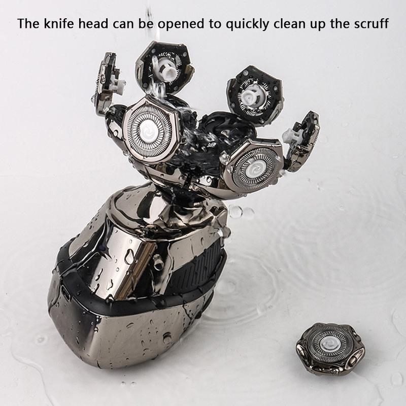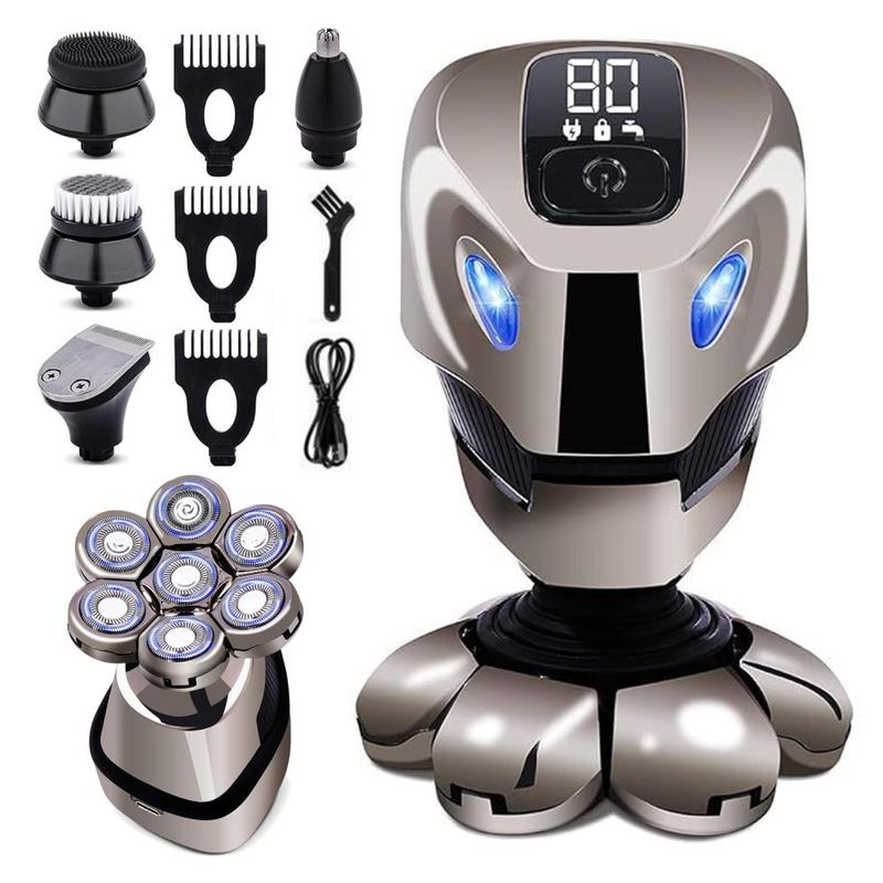 - 5-in-1 Grooming System: Includes 7D floating shaver head, hair trimmer, nose hair trimmer, facial cleaning brush, and facial massage sponge for versatile grooming.