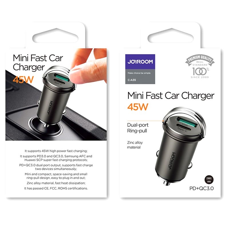 Ovaj model unutrašnjosti vašeg automobila dodaje jedan tip-A i jedan tip-C ulaz za punjenje. Oba ulaza podržavaju protokole brzog punjenja, pri čemu Joyroom C-A35 ima ukupnu izlaznu snagu od 45W, tako da obezbeđuje efikasne performanse.