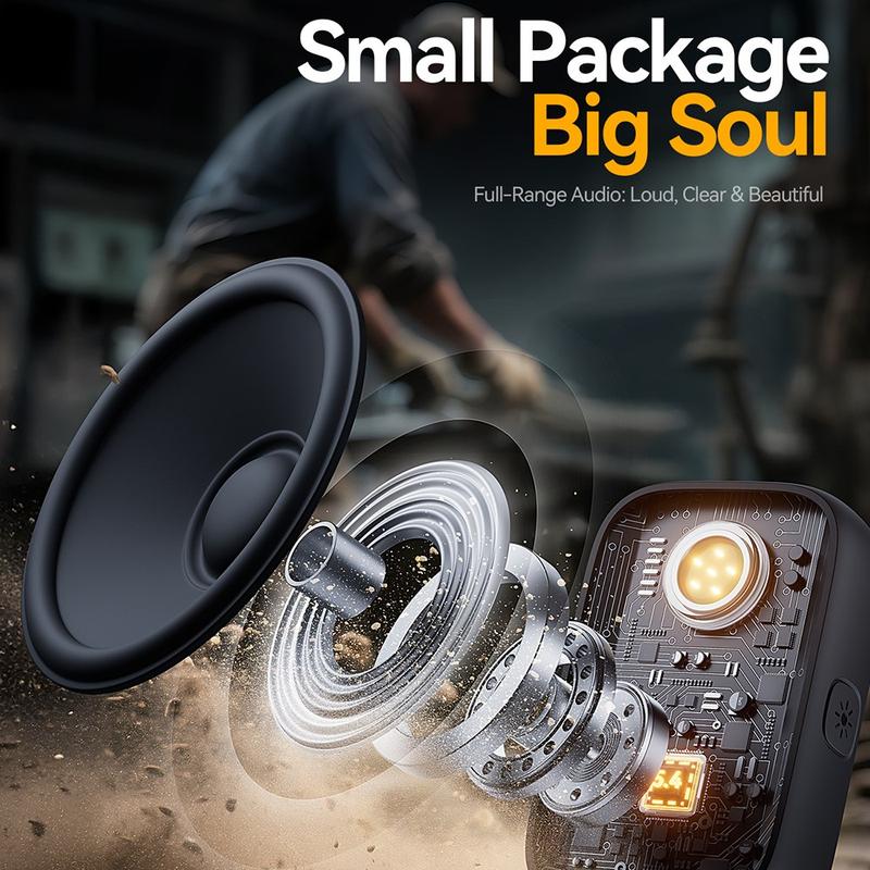 - 33 mm full-range speaker for balanced, punchy audio from a pocket-sized body