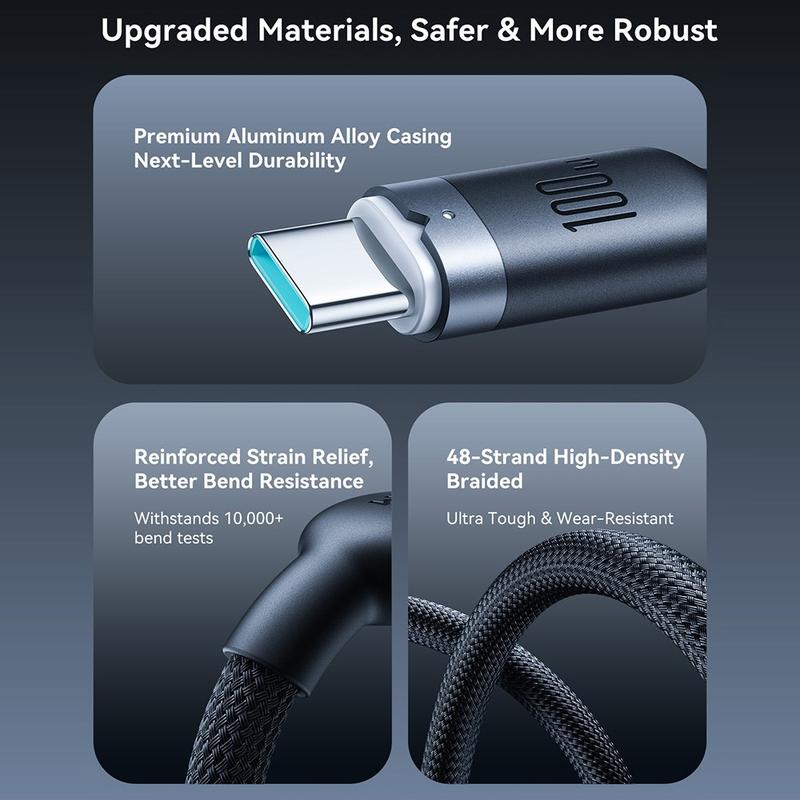 100W USB-C cables are especially popular because they can handle charging not only phones and tablets, but also many modern laptops and larger devices. Braided cables are often preferred for daily use because they tend to resist wear better than basic plastic-coated cables, especially when carried in bags or used frequently.